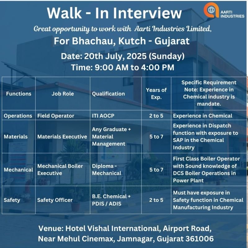 Walk-In Interview – Aarti Industries Ltd., Bhachau (Kutch)