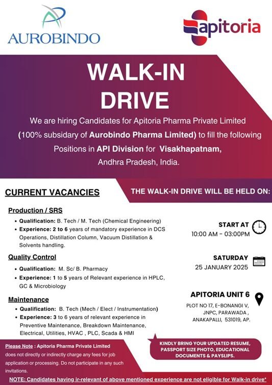 Note: KINDLY BRING YOUR UPDATED RESUME, PASSPORT SIZE PHOTO, EDUCATIONAL DOCUMENTS & PAYSLIPS