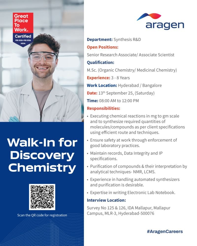 Are you passionate about science and ready to grow your career in chemistry? Join our innovation-driven team in Hyderabad/ Bangalore and be part of a company committed to scientific excellence and global impact.