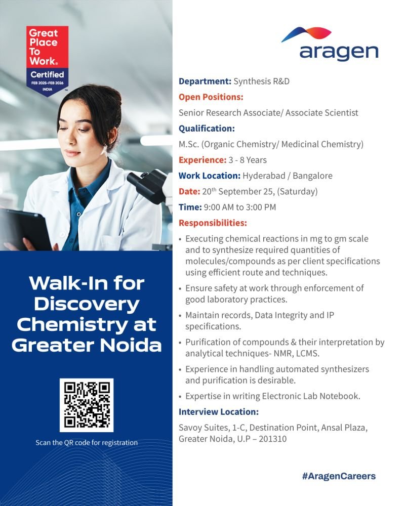 Aragen is hiring talented minds in Chemistry for exciting roles in Discovery Solutions mark the date 👉
