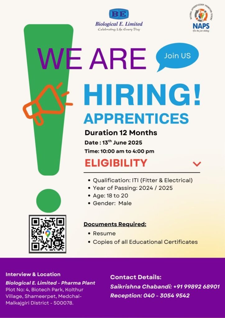 Walk-in drive for ITI Apprenticeship on 13th June 2025