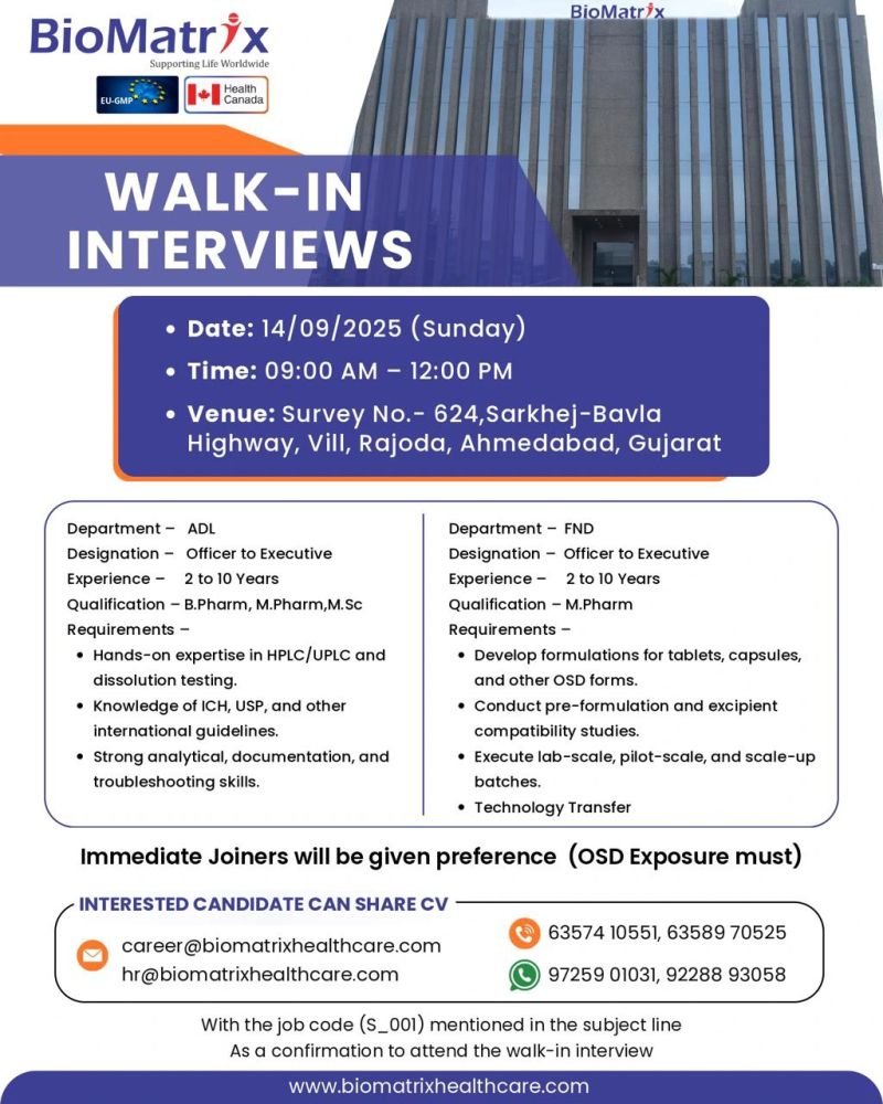 career@biomatrixhealthcare.com & hr@biomatrixhealthcare.com