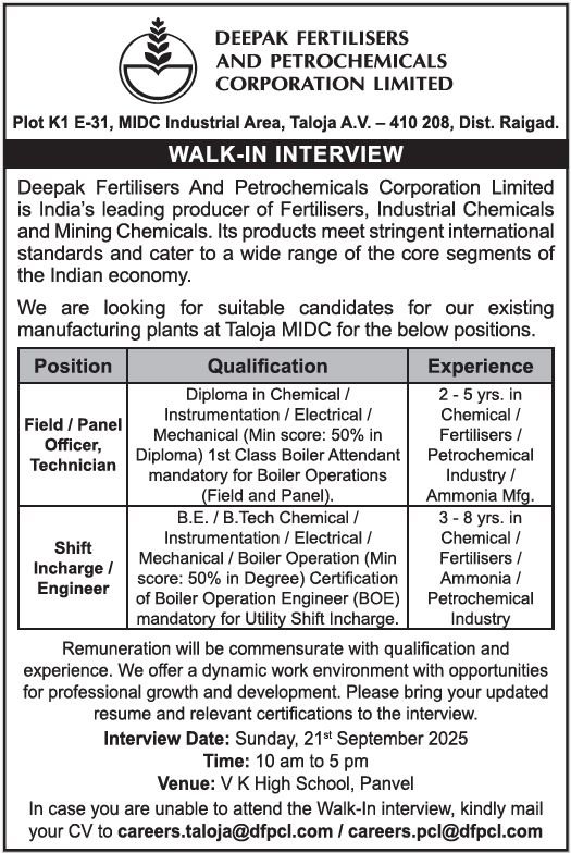 careers.taloja@dfpcl.com / careers.pcl@dfpcl.com