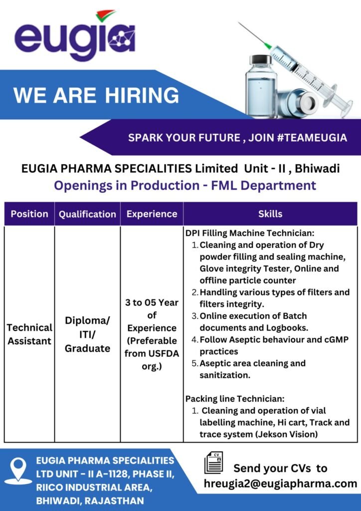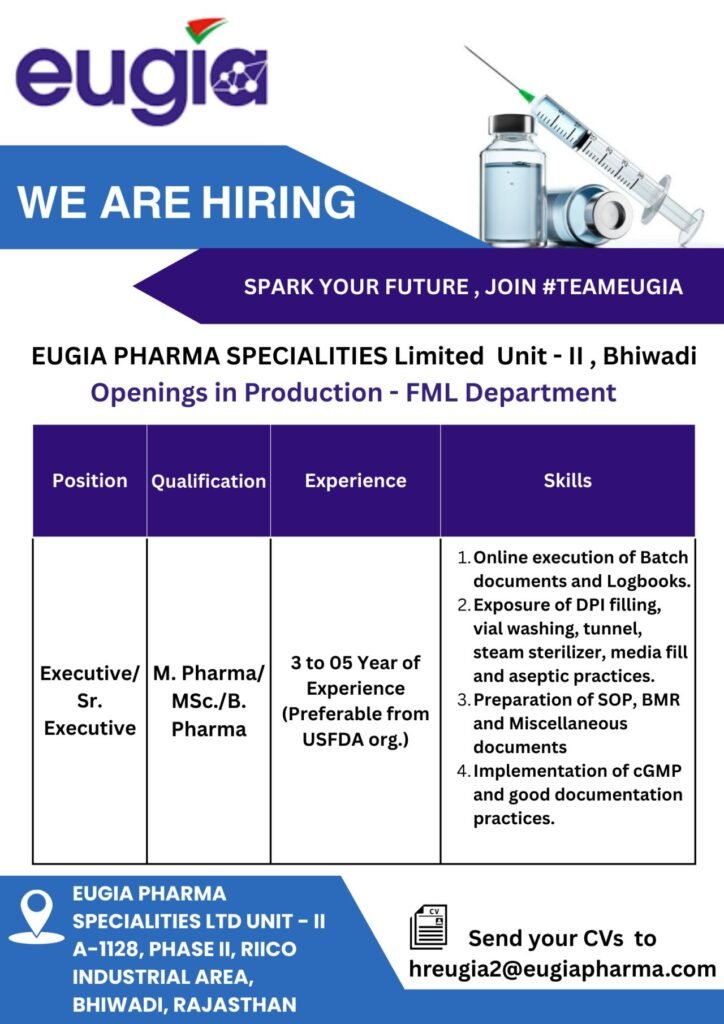 Eugia Pharma is hiring for Production-FML Department