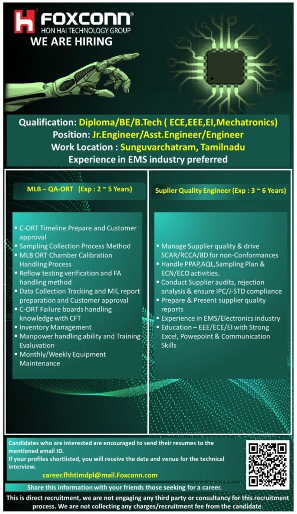 Qualification: Diploma/BE/B.Tech (ECE,EEE,EI,Mechatronics)