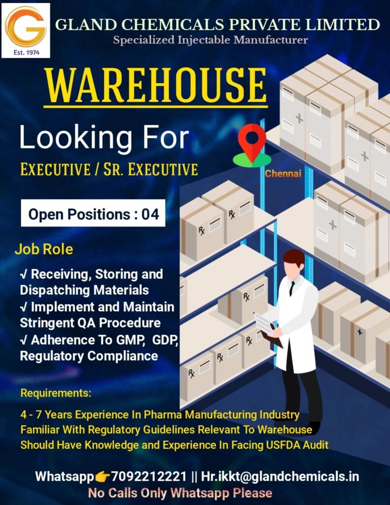 4-7 Years Experience In Pharma Manufacturing Industry Familiar With Regulatory Guidelines Relevant To Warehouse Should Have Knowledge and Experience In Facing USFDA Audit