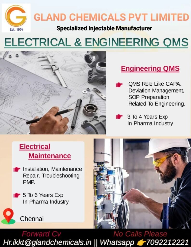 QMS Role Like CAPA, Deviation Management, SOP Preparation Related To Engineering.