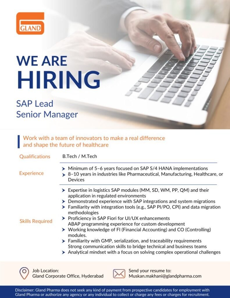 At Gland Pharma, we’re looking for experienced SAP professionals to join our team.