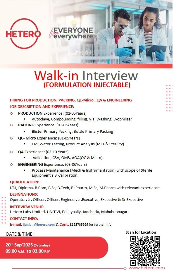 📍 Venue: Hetero Labs Limited, UNIT VI, Polleypally, Jadcherla, Mahabubnagar