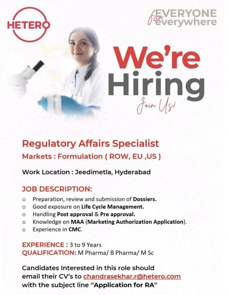 🎓 Qualification: M. Pharma / B. Pharma / M. Sc