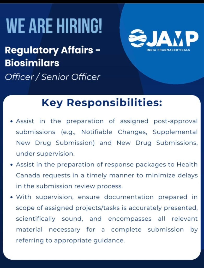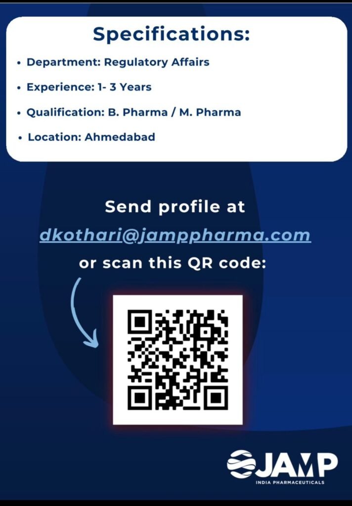 JAMP India Pharmaceuticals is hiring for Regulatory Affairs Department