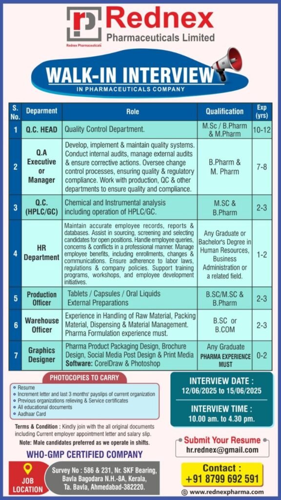 Qualification: Any Graduate Pharma experience must