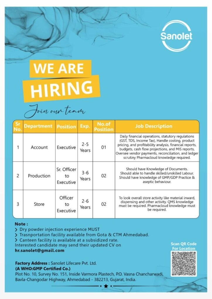 Interested candidate may send their updated CV on hr.sanolet@gmail.com