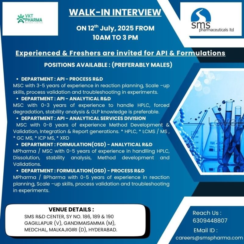 Walk-in Date & Time: 12th July, 2025 FROM 10AM TO 3 PM