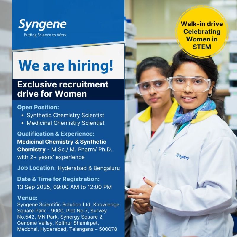 Venue: Syngene Scientific Solution Ltd. Knowledge Square Park – 9000, Plot No.7, Survey No.542, MN Park, Synergy Square 2, Genome Valley, Kolthur Shamirpet, Medchal, Hyderabad, Telangana – 500078