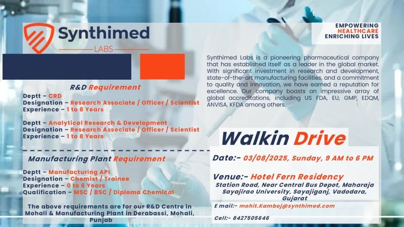 We’re hiring passionate professionals for our R&D Centre in Mohali and Manufacturing Plant in Derabassi, Punjab. If you’re looking to make a meaningful impact in pharma innovation, your journey begins here.