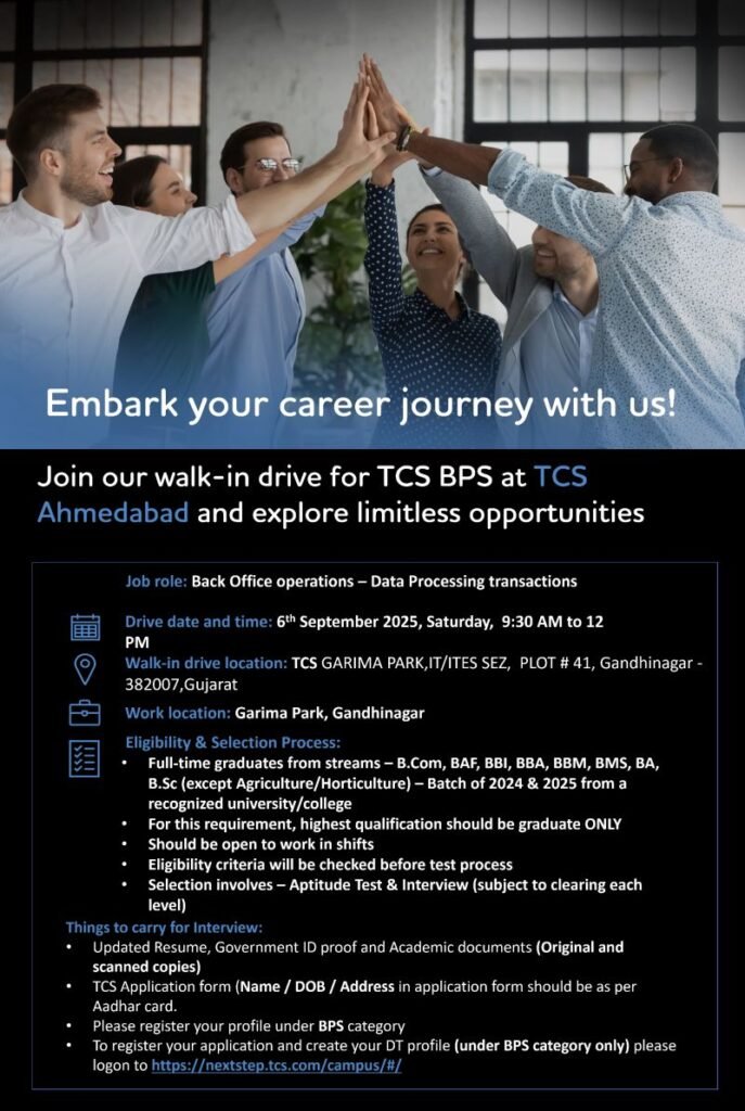 Join our walk-in drive for TCS BPS at TCS Ahmedabad and explore limitless opportunities