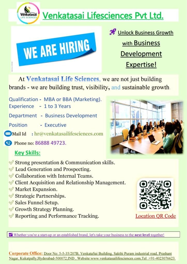 ๐Ÿ“ฉ Send your resume to: hr@venkatasailifesciences.com